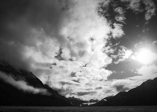 Try it with a scenic shot, like this one from the Eglinton Valley in New Zealand. Here it is in original colour: