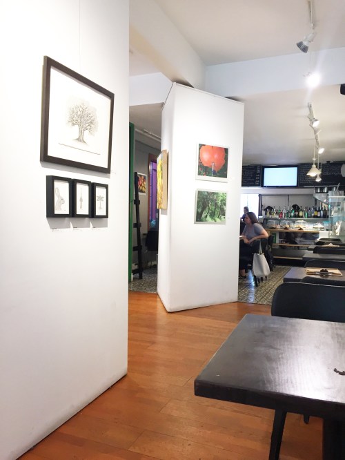 Warning to the art-sensitive: If the art upstairs intoxicates you and your head swirls and you run downstairs to the washroom to vomit or sketch, you will discover there is a whole nother damn gallery down there too with more art.