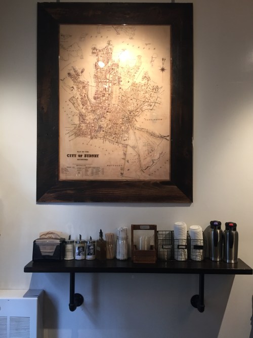 There’s an old map of Sydney on the wall just inside the door. Score one for me.