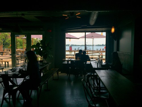 The view is great, yes. But it’s so bright outside and so dark inside. If you’re working on a laptop, this is going to cause you headaches. Literal ones. Plant yourself at one of the tables inside. They have lower picnic-styled ones with benches and they have higher counters with chairs with backs.