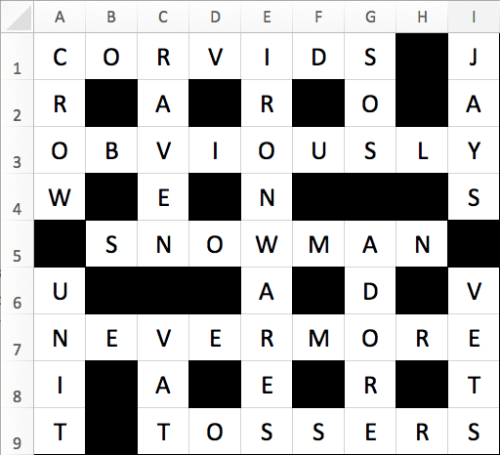 Here’s the solution to the cryptic crossword. If you’d like an explanation for any of the clues, ask away!