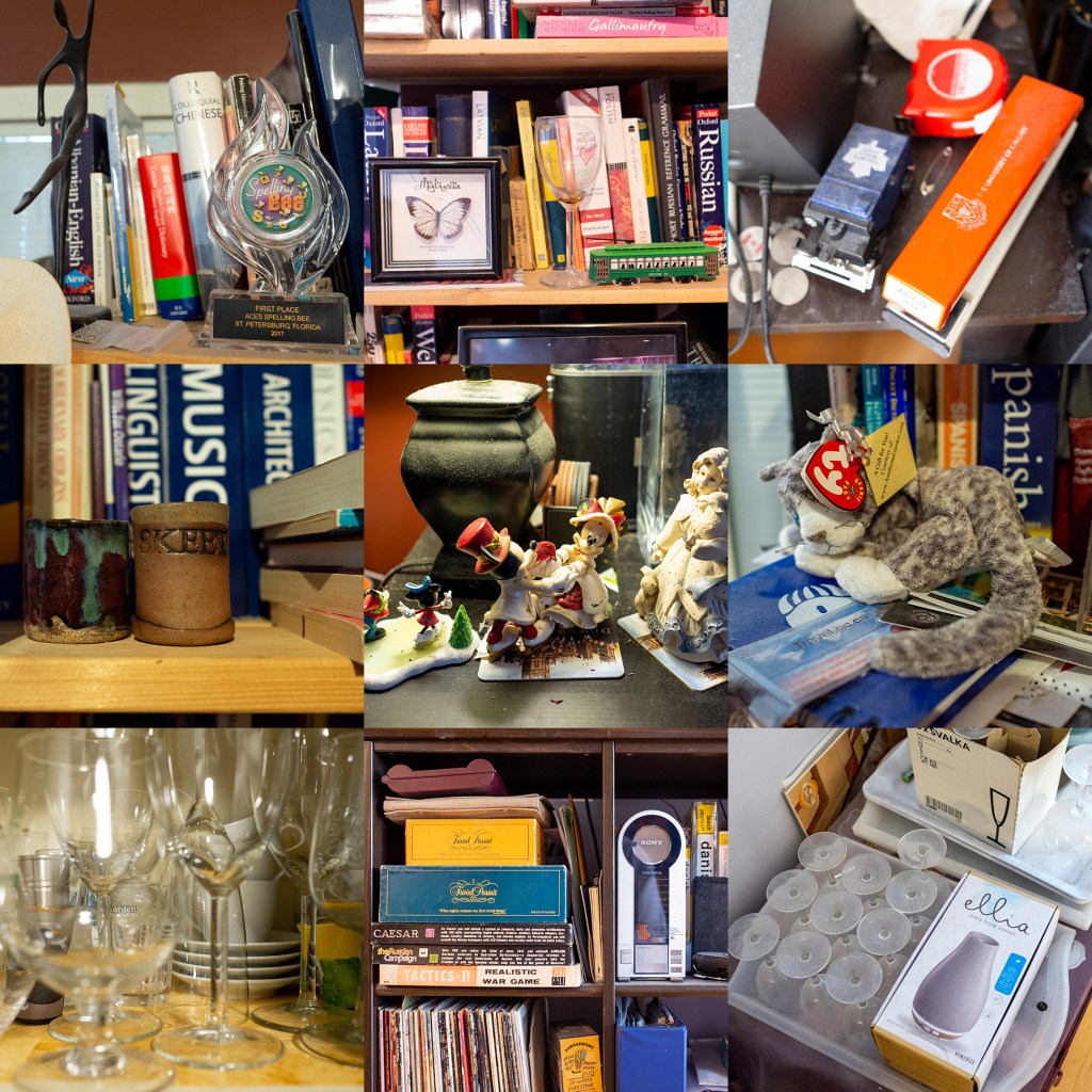 Propped up on bricks and in brackets, strewn on shelves, or locked away in boxes, the assorted flotsam and jetsam of life decorates – or clutters, depending on whom you ask – the home of anyone who’s lived long enough. Knick-knacks, widgets, tchotch, stuff, junk… bric-a-brac. A bricolage of half-forgotten fancies, lost moments, gifts, souvenirs, lapses of reason: the tritest detritus to treat us to. Old but not antique, antique but not vintage, vintage but not valuable, collected here and there, à bricq et à bracq.
