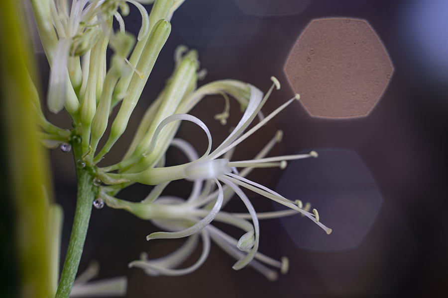 To be precise, it grows a stalk, separate from its long leaves; the stalk grows bulbs; eventually the bulbs open into flowers. Pretty little fragrant flowers. They won’t last all that long, I read, but they rejoice while they are here. And so do we. They are welcome, unexpected as they are, wherever they might have come from.