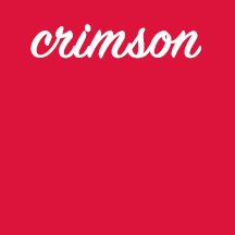 Crimson, of course, you know very well, from pirates and crimson tide (a killing force in marine life and college football) and such like. Wikipedia tells me it’s the national colour of Nepal; I don’t need Wikipedia to tell me that it is also the theme colour of Harvard University – the student newspaper there is The Harvard Crimson. Crimson is (again per Wikipedia) RGB 220/20/60. At a glance you can see it’s brighter but also slightly less purely primary red.