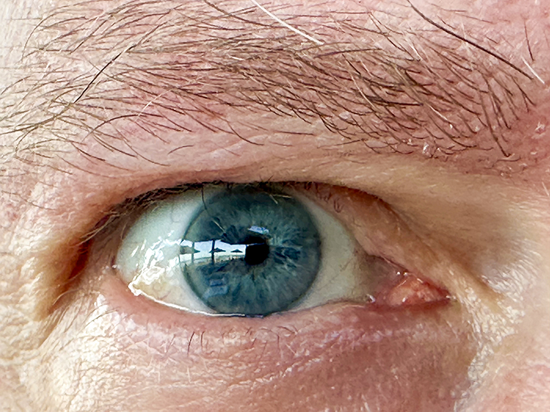 By the way, look closely at that picture of my eye. Do you see the reflection left of centre? Can you make it out? Look closely. Here’s a picture of what I was looking at.