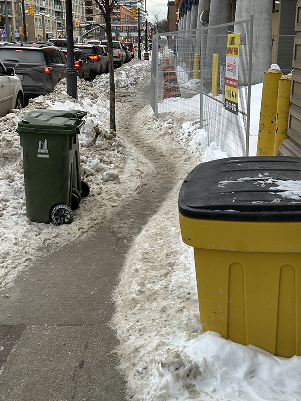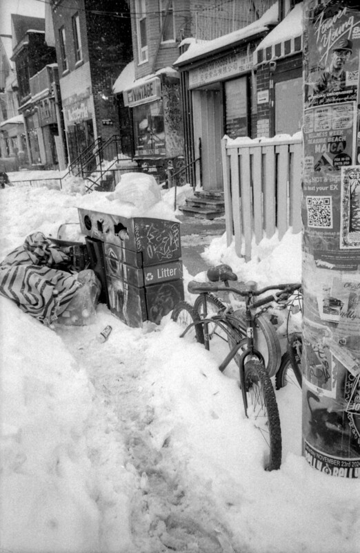 Neige a neigé! Snow has fallen, snow on snow… We are inneviated. Toronto has not seen so much snow at one time in several years, and the usual approach around here to handling snow is not so functional: push it aside into piles to leave a space down the middle or, if no one really “owns” the section of sidewalk, just let people posthole in it until they stomp it into submission (and what about the streets? oh, of course they plough those… and push the snow from them right up onto the sidewalk, which leaves less space for those walking). And, finally, dump endless tons of icemelt crystals on it, so that until the weather warms up enough to drain it all away, we are left schlepping through a salty muck of slush.