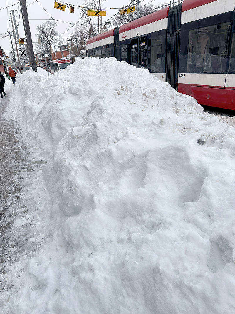 It snowed a fair amount over the weekend, and then the ploughs got busy producing large heaps of snow along the sides of streets, often blocking driveways and pedestrian access points. So, obviously, the question is…