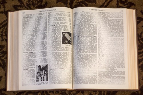 This copy – like any copy of the book – is nearly 70 years old now, but it’s in good condition. The dust cover is only a bit tattered at the edges, and the while the binding, like any old cloth binding, has a few places where it falls open more readily, it is not at all coming apart or losing pages. The paper is solid – halfway to card stock – and smooth and shiny, just slightly creamy in colour, and well suited to the reproduction of its numerous illustrations in line and watercolour interspersed with the text in good-quality four-colour offset. There is no colophon, so I don’t want to say what the text type face is, but it’s at least similar to Times New Roman – perhaps a type enthusiast can comment: