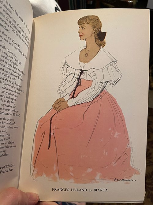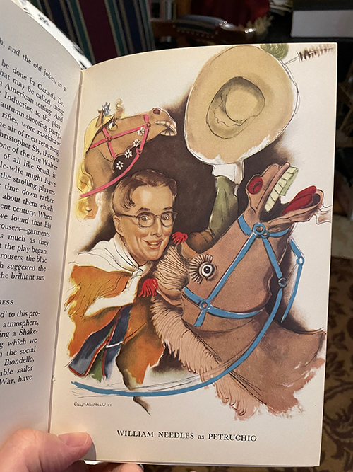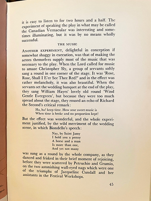 It was published by Clarke, Irwin & Company (now defunct) and was released by the Stratford Shakespearean Festival of Stratford, Ontario, on the occasion of its second season, in 1954. I’m sure that Arisa acquired it used – she was barely a teen when it was published – but I’m not surprised that she had it. She was a lifelong fan of the performing arts, including the Stratford Festival, which she joined us to on several occasions.