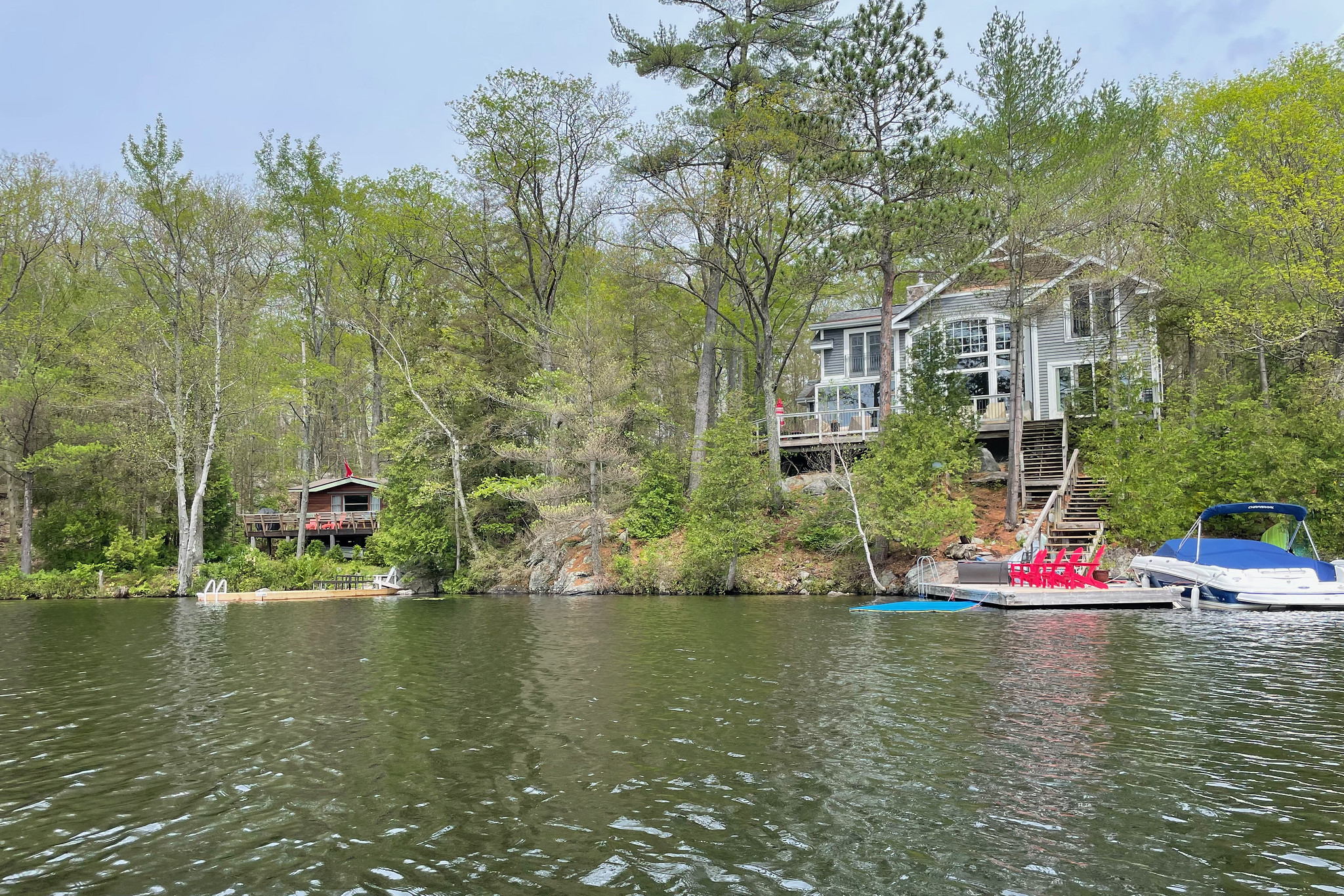 Anyway, cottages up in “cottage country” in Ontario almost never list for less than a million dollars now, no matter how small and basic they may be, and some are selling for more than ten million dollars. And while the standard image of a Muskoka cottage (Lake Muskoka is cottage central, though not the only place for them) is a single-storey woodsy place of less than a thousand square feet (a hundred square metres), many of them now are multi-storey showpieces, much more impressive than the average urban house.