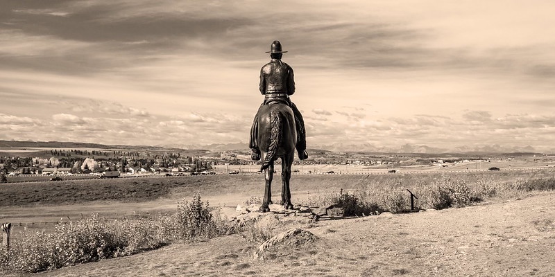 And when I say it I really mean the several Cochranes, the whole patchwork of places overseen by the Man of Vision horse-and-rider statue dominating a hill above the intersection of highways 1A and 22. My parents moved there about a quarter of a century ago and have become thoroughly embedded and well known in the town. And I enjoy my visits, especially the lengthy strolls I take around town with my camera in hand.