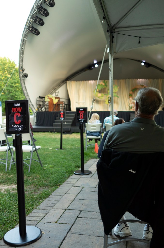 Ontario is still easing out of its Covid lockdown, so indoor theatre is out – and so (for a few days yet) is indoor dining. But it’s warm enough that we can do these usually indoor activities outdoors, in the warm summer air. Al fresco. So to speak.