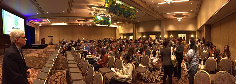 They’re about not just listening to information, but listening to it sitting next to someone interesting you just met. They’re about not just laughing at a witticism, but laughing about it in a room full of people. They’re about sneaking into a session late, sneaking out of a session early, standing listening at the back because the room is too full, live-tweeting, asking a question in person, sharing in the silent group indignation when someone goes on a rambling more-a-comment-than-a-question.
